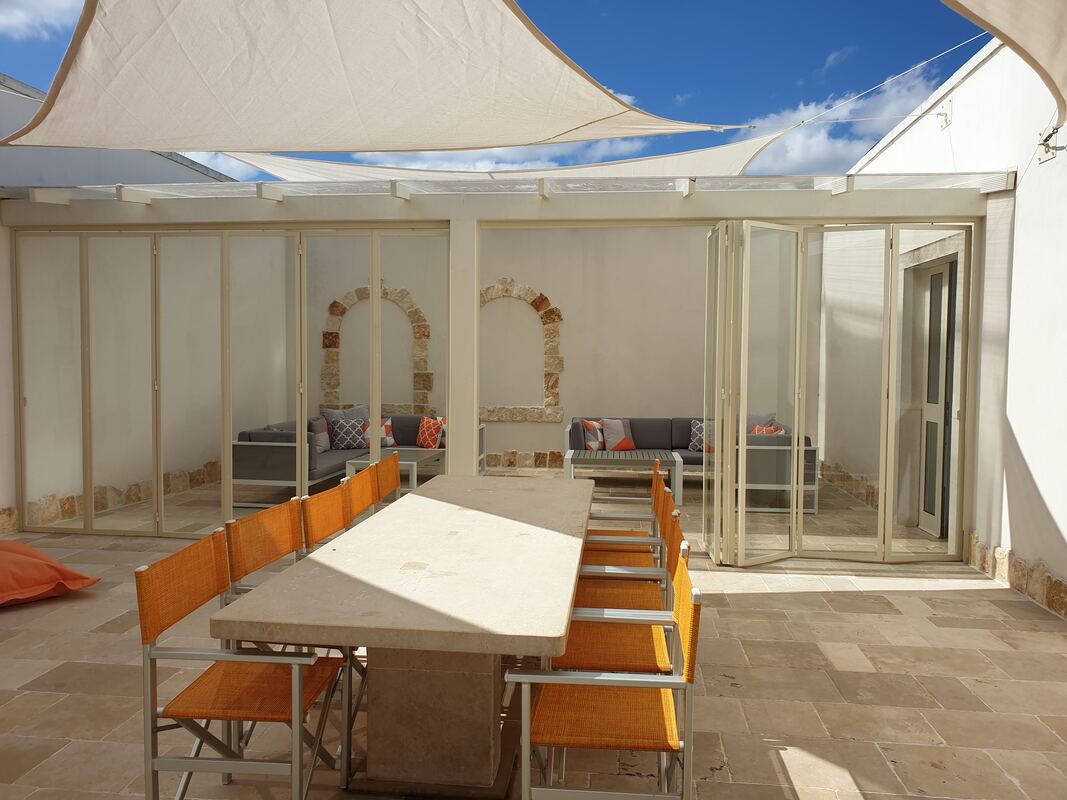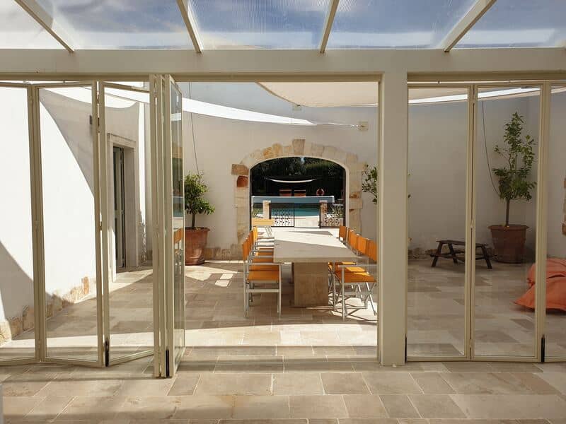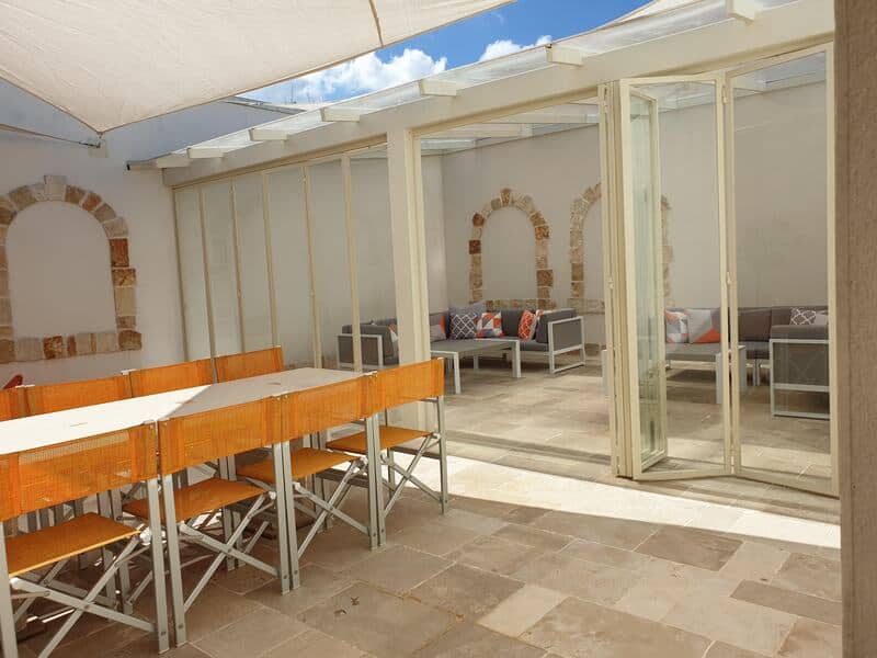 Adding a conservatory or an enclosed pergola gives your quests some outside space to sit in during the cooler spring and winter evenings. It also means they can enjoy the outdoor space even when the weather is cold or wet which is very welcome as trulli can be quite dark inside when the sun isn’t shining.